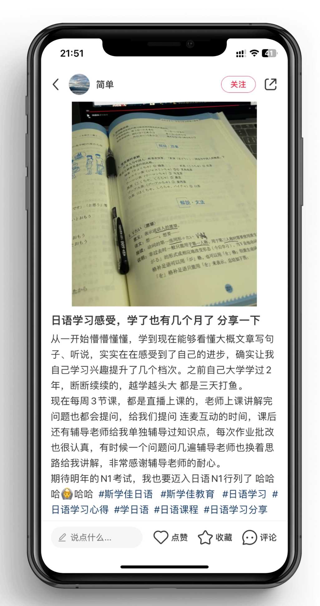不知道如何入门日语,不会系统规划学习节奏,不懂如何自我检验,调整学习进度, 导致词汇记不住,语法模糊,长难句看不懂
